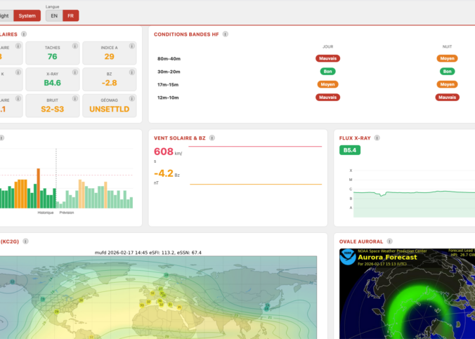 Ce qui change L’ancienne page HF Propagation était simple : une image statique du bandeau solaire N0NBH et un graphique Morris.js censé afficher l’historique des données collectées. En pratique, le graphique ne fonctionnait plus depuis longtemps, et la page se…
